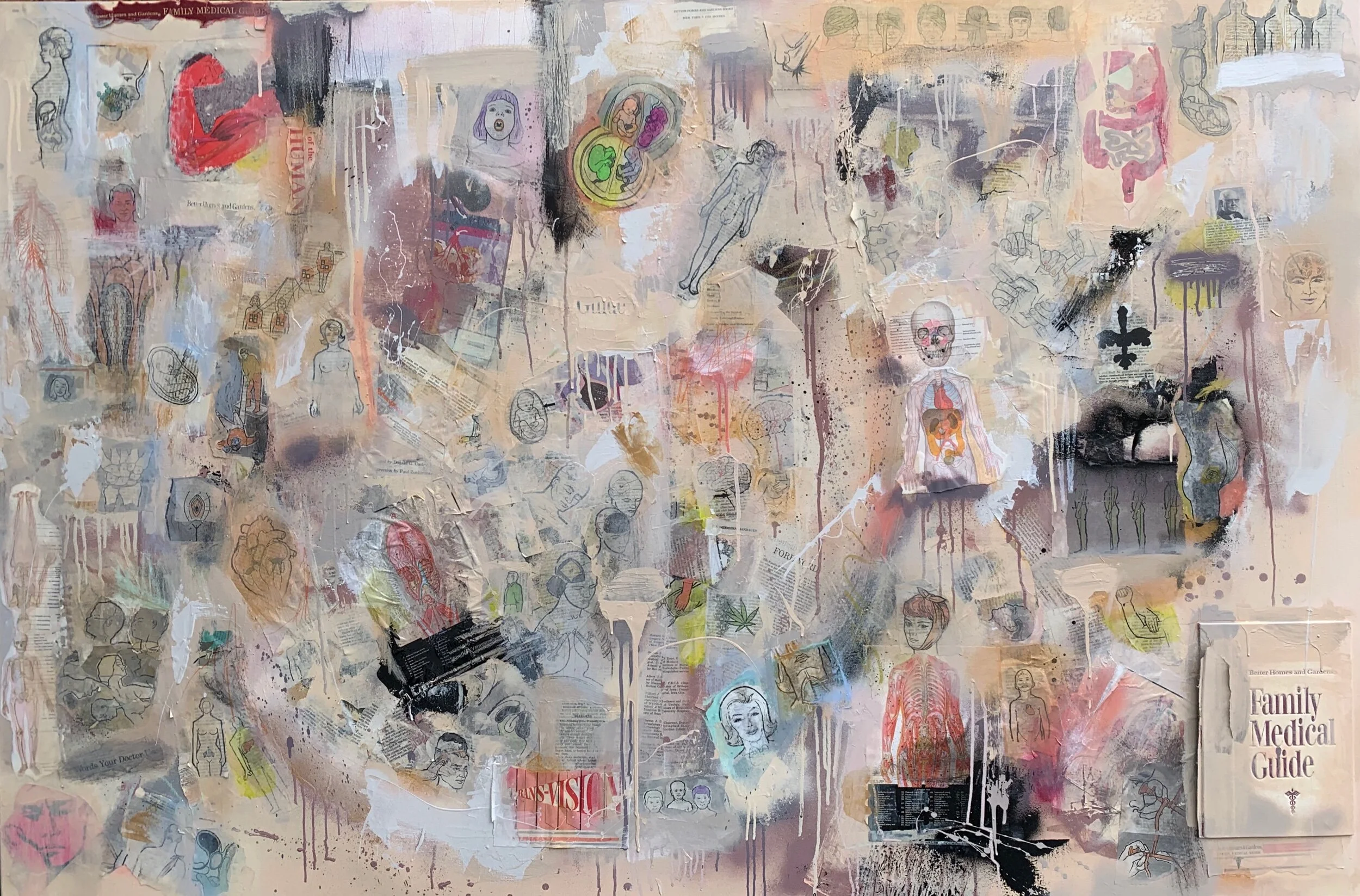 mixed media collage on stretched canvas