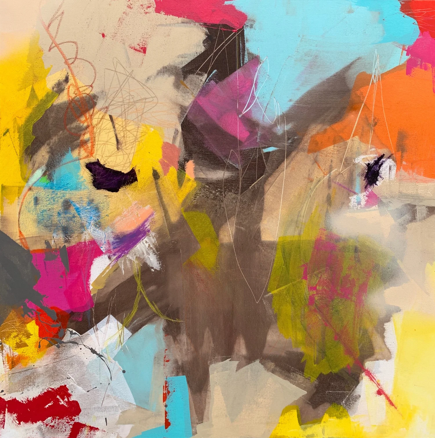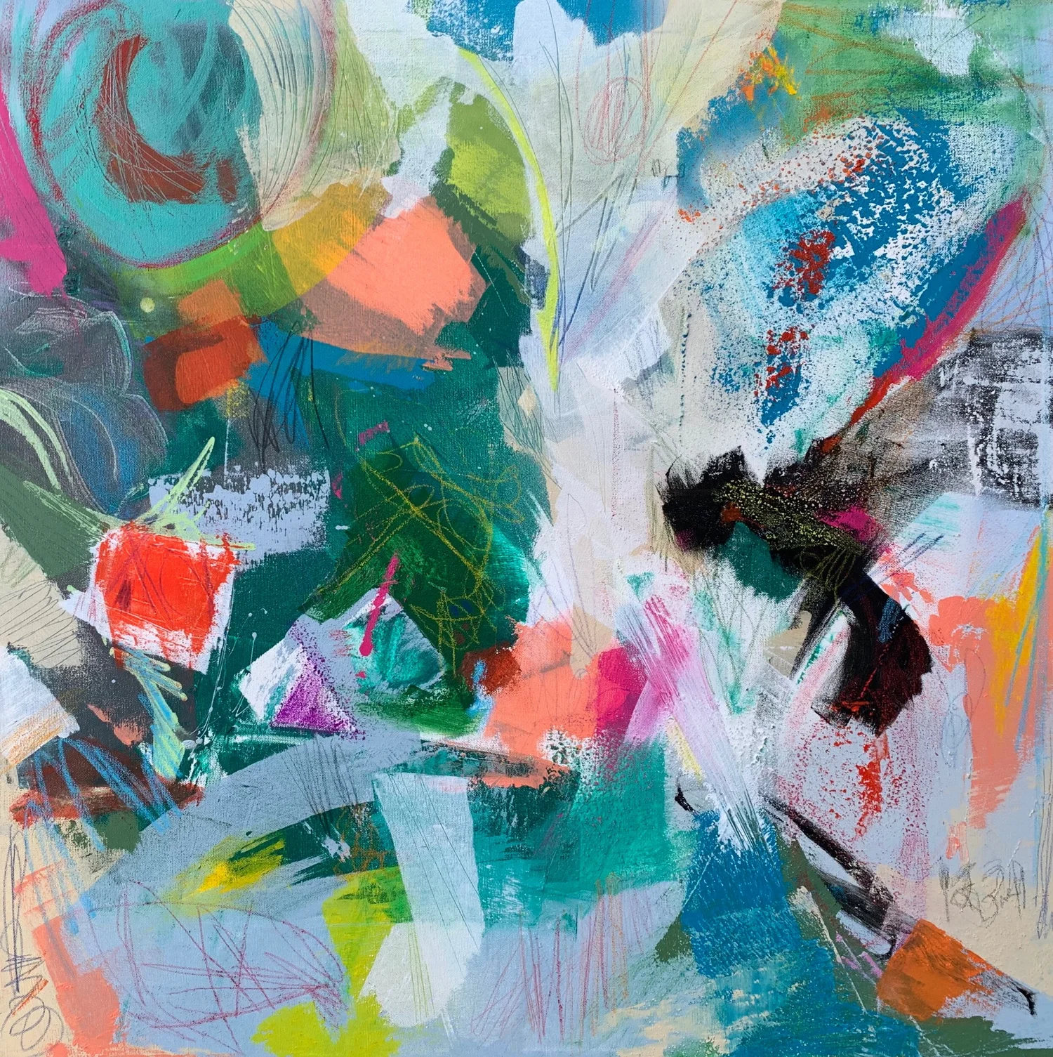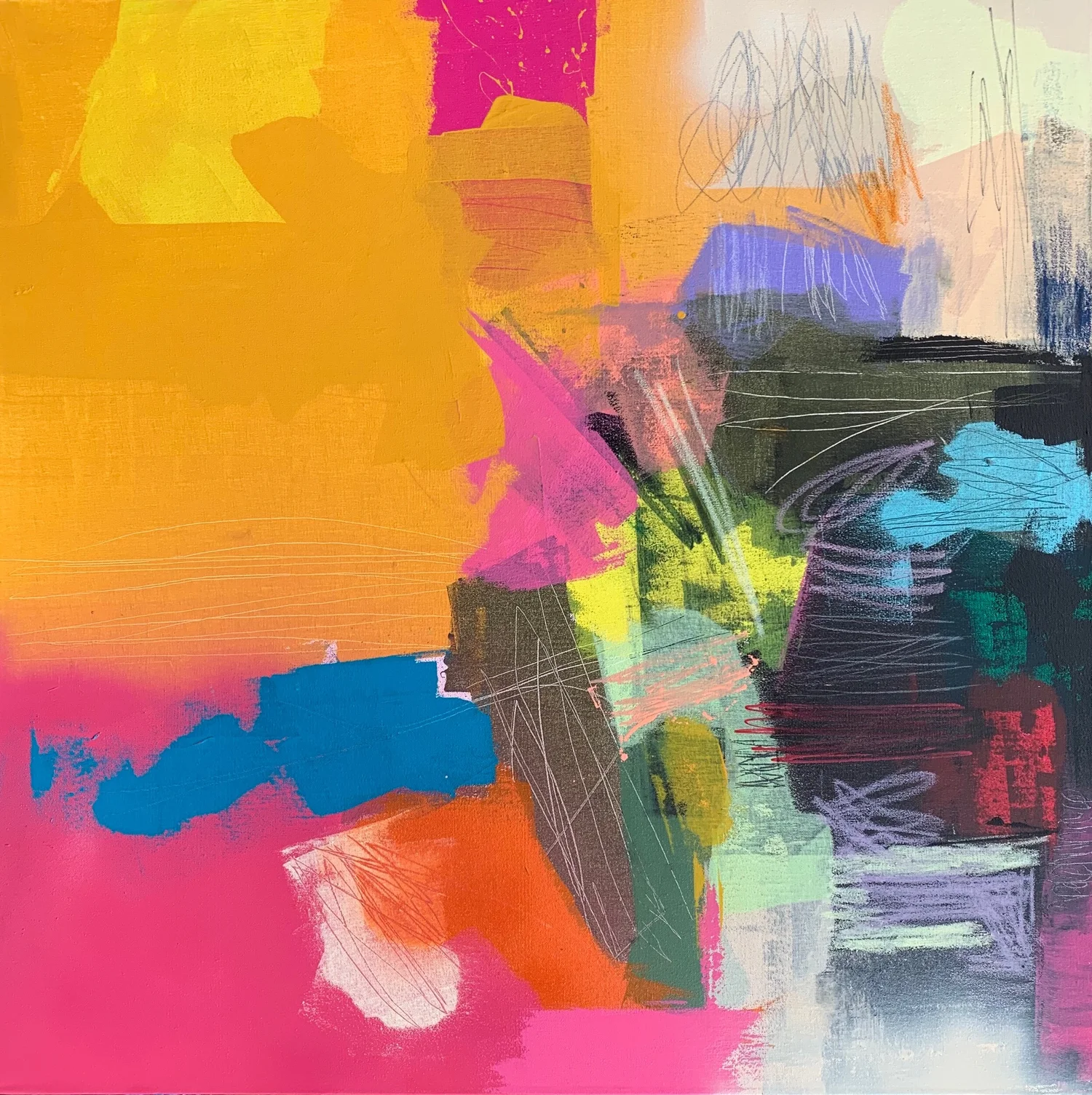 mixed media on stretched canvas